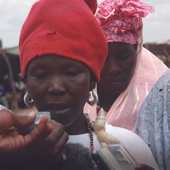 ガンビアのある地域でFGM廃止を祝うイベントがひらかれました。女の子の心と体を傷つけ、死や感染症のリスクにさらすFGMをなくすため、ユニセフは宗教や地域のリーダーを説得し、公約を定めました。切除師として代々活動していたニャバリーさんも今では慣習に反対しています。イベントに集まった人々に女の子たちの受けた苦しみについて語り、二度と手術をおこなわないという決意とともに手術用ナイフを土にうめました。