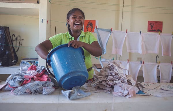「私はウェンディ。19歳。コロンビアの大学で、仲間といっしょに、ロバの糞やマングローブの葉をつかって再生紙をつくる『エコマングラーテ』というプロジェクトをやっています。自然が私たちにあたえてくれたものを、少しでもお返しできたらと思って。自分たちを〈変化をつくる世代〉だと思っています。だから、リスクもおそれません。気候変動問題を解決しようと決意した世代です」。ユニセフはこうした若者たちの活動を支援しています。