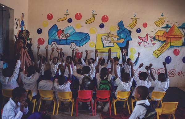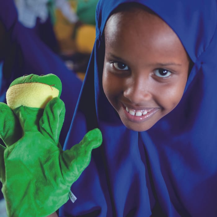 幼児期の体験や刺激がその後の発達に大きな影響をあたえるため、幼稚園などの就学前教育はとても大切です。ソマリアで就学前教育を受けている子どもはわずか2%。ユニセフは就学前教育を広める支援をしています。幼稚園で人形やボールをつかって楽しくまなぶ子どもたち。「幼稚園に早く来るのが好きなの。勉強だけじゃなく友だちとあそべるから」とアーシアちゃん。さまざまな体験を通じて、これからどんどん成長していきます。