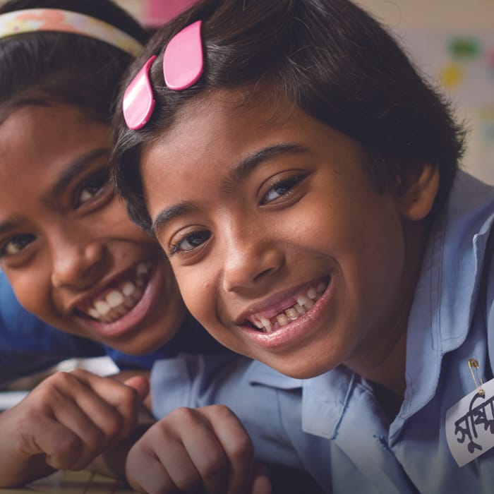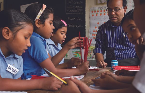 「楽しくまなべるから、学校が大好きです」と7歳のシュシュミタさん。ユニセフが進める「子どもにやさしい学校」アプローチを取り入れたバングラデシュの首都ダッカにあるこの小学校は、子ども中心の参加型授業を重視し、それぞれの子どもの特性に合わせてまなび方や学習進度を工夫しています。小さな木の板やボトルキャップ、棒をつかって算数の勉強していたシュシュミタさんは、ときどき笑顔を見せながら、ひたむきにまなんでいます。