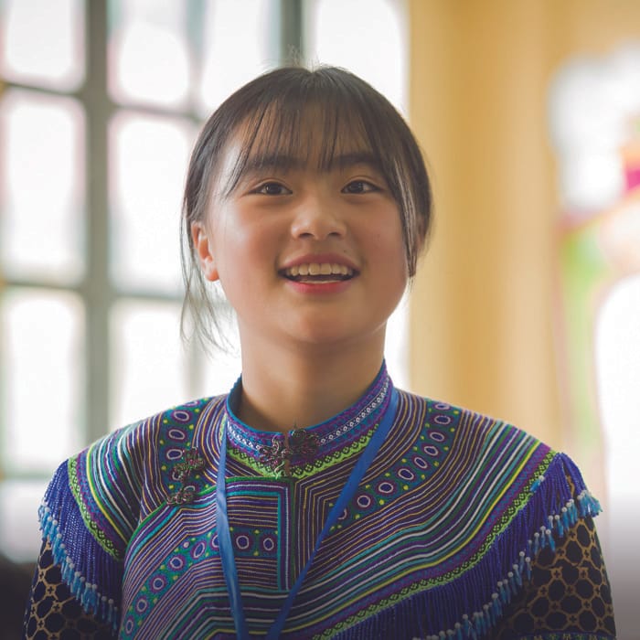 多民族国家のベトナム。公用語のベトナム語を話さない少数民族の子どもたちにとって、学校でまなぶには大きな〈言葉の壁〉がありました。ユニセフが支援する多言語教育プログラムでモン族の言葉とベトナム語の両方で勉強するハさん。今では学習コンクールで1位を取るまでになりました。「すべての少数民族の子どもたちが、小さいうちから自分の民族の言葉と公用語の両方で、教育を受けられるようになってほしい」。彼女の願いです。