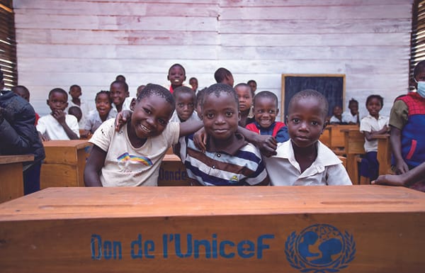 子どもは教育を受ける権利をもっています。すべての子どもが小学校に行けるようにしなければなりません。さらに上の学校に進みたいときには、みんなにそのチャンスがあたえられなければなりません。このことは、「子どもの権利条約」にも書かれています。子どもたちが教育を受けて成長することで、その社会全体が発展して豊かになります。教育こそが、より良い未来をつくるカギです。ユニセフは、だれも取り残すことなく、すべての子どもたちに質の高い教育を提供することをめざし、支援を届けています。