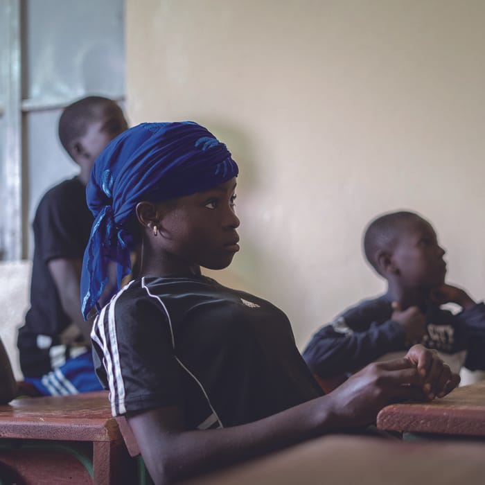 西アフリカのニジェールは、児童婚の割合が高く、女の子が社会で活躍するのがむずかしい国です。しかし中学校以上の教育を受けた女性は、児童婚をさせられる可能性が4分の1になります。学費が払えず小学校を中退した13歳のパスカリンさんは、ユニセフが支援するサッカーアカデミーの試験に合格。アカデミーでは学校の授業も受けられるので、サッカーに加えて中学校の勉強にも取り組んで、自分の未来を切りひらいています。