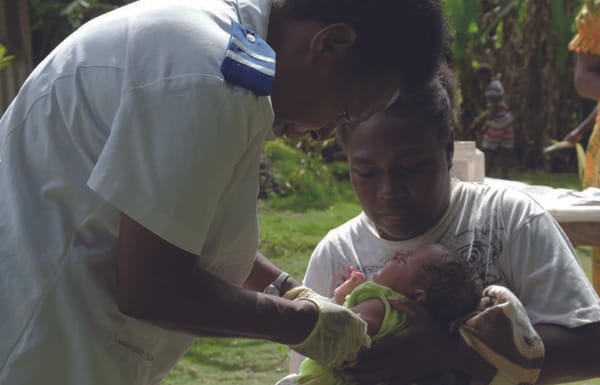 バヌアツは山がちな島々からなり、道路の数も限られるため、ワクチンを保冷ボックスで低温管理しながら運ぶにはきびしい環境です。しかし、ドローンを利用することで、交通の便がよくない場所に住む子どもたちへもワクチンを届けることができます。ユニセフは、保健物資の輸送などにドローンを広く活用していく予定です。ジョイちゃんは、ドローンで運ばれたワクチンではじめて予防接種を受けることができました。