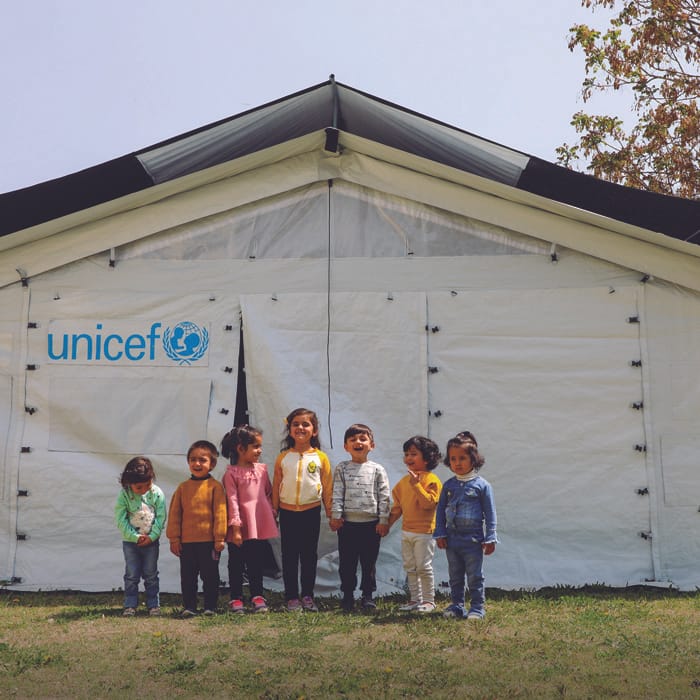 世界のどこでなにが起きても72時間以内に支援物資を届ける。その中心地がデンマークの首都コペンハーゲンにあるユニセフの物資供給センターです。調達と発送だけでなく、支援物資の開発もおこなっています。最近ではメーカーとの2年にわたる開発期間をへて、高性能の大型テントを開発。空間が広がり、換気や温度調節機能も改善されて、頑丈になりました。ユニセフは世界中の支援現場で、子どもたちに安心安全な空間を提供しています。