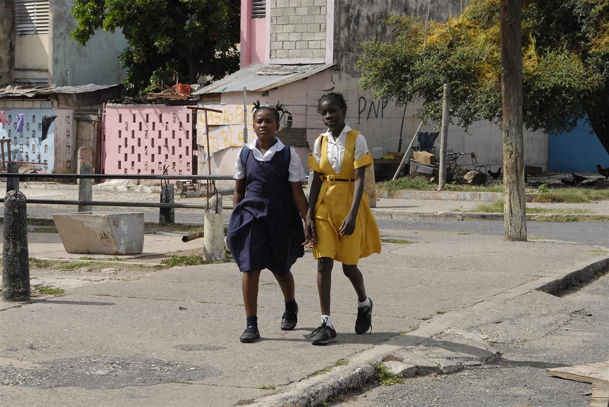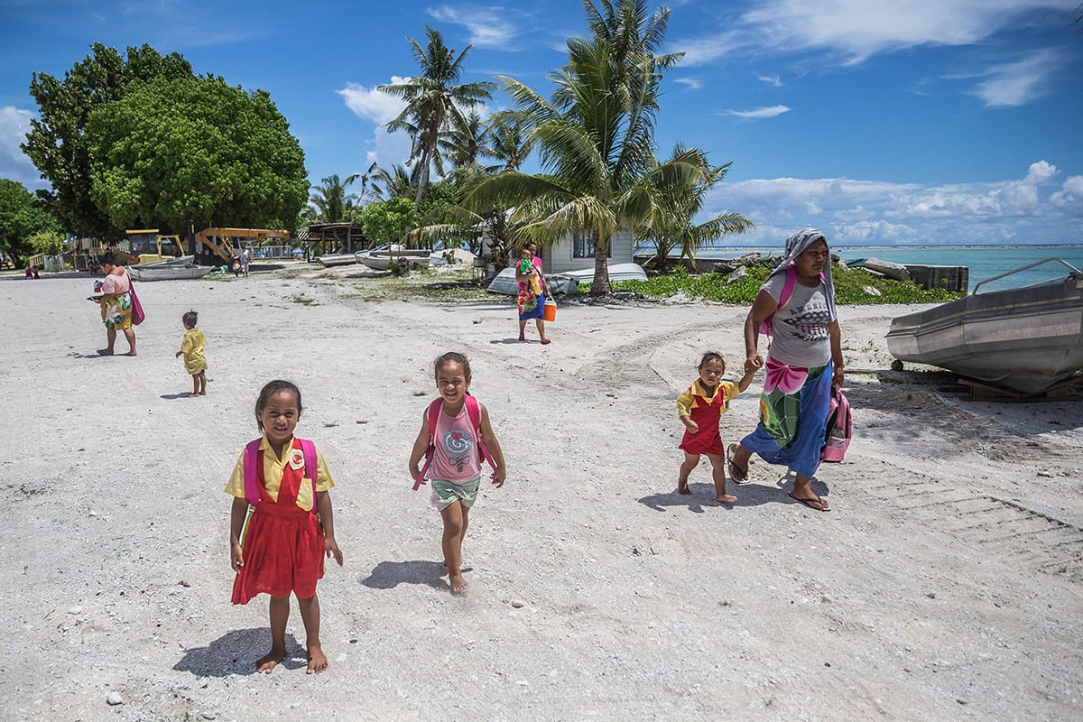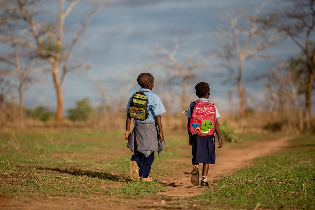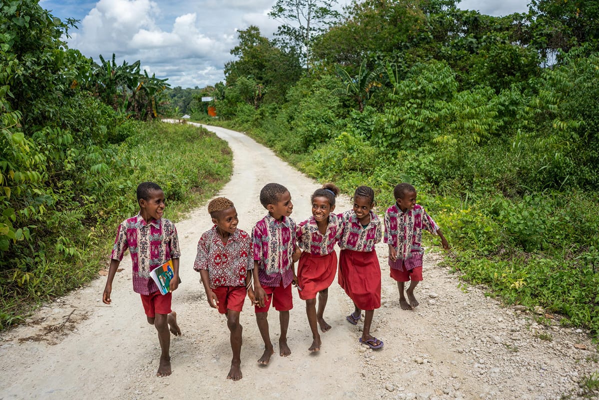 世界の子どもたちは、どんな道を歩いて通っていますか。どんな服や靴で通っているでしょう。まわりにはなにが見えますか。
